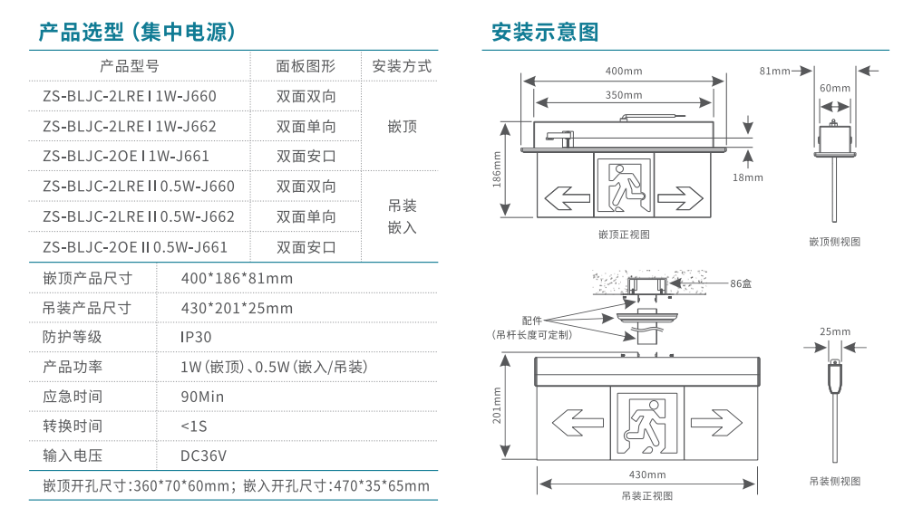 雙面雙向標(biāo)志燈(水晶吊牌款)消防應(yīng)急標(biāo)志燈 | ZS-BLJC-2LREⅠ1W-J660 | 嵌裝