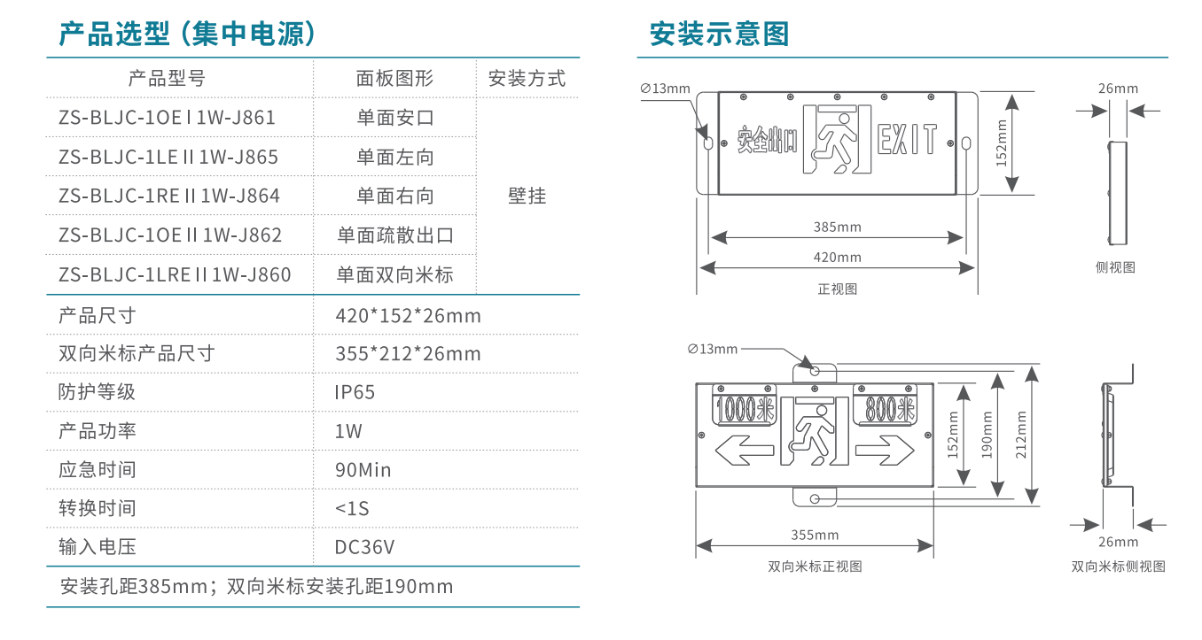 軌道交通-單面雙向米標應急標志燈 | ZS-BLJC-1LREⅡ1W-J860 | 壁掛