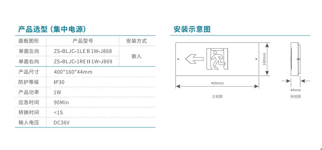軌道交通-弧形款-單面左向應急標志燈 | ZS-BLJC-1REⅡ1W-J869 | 嵌入