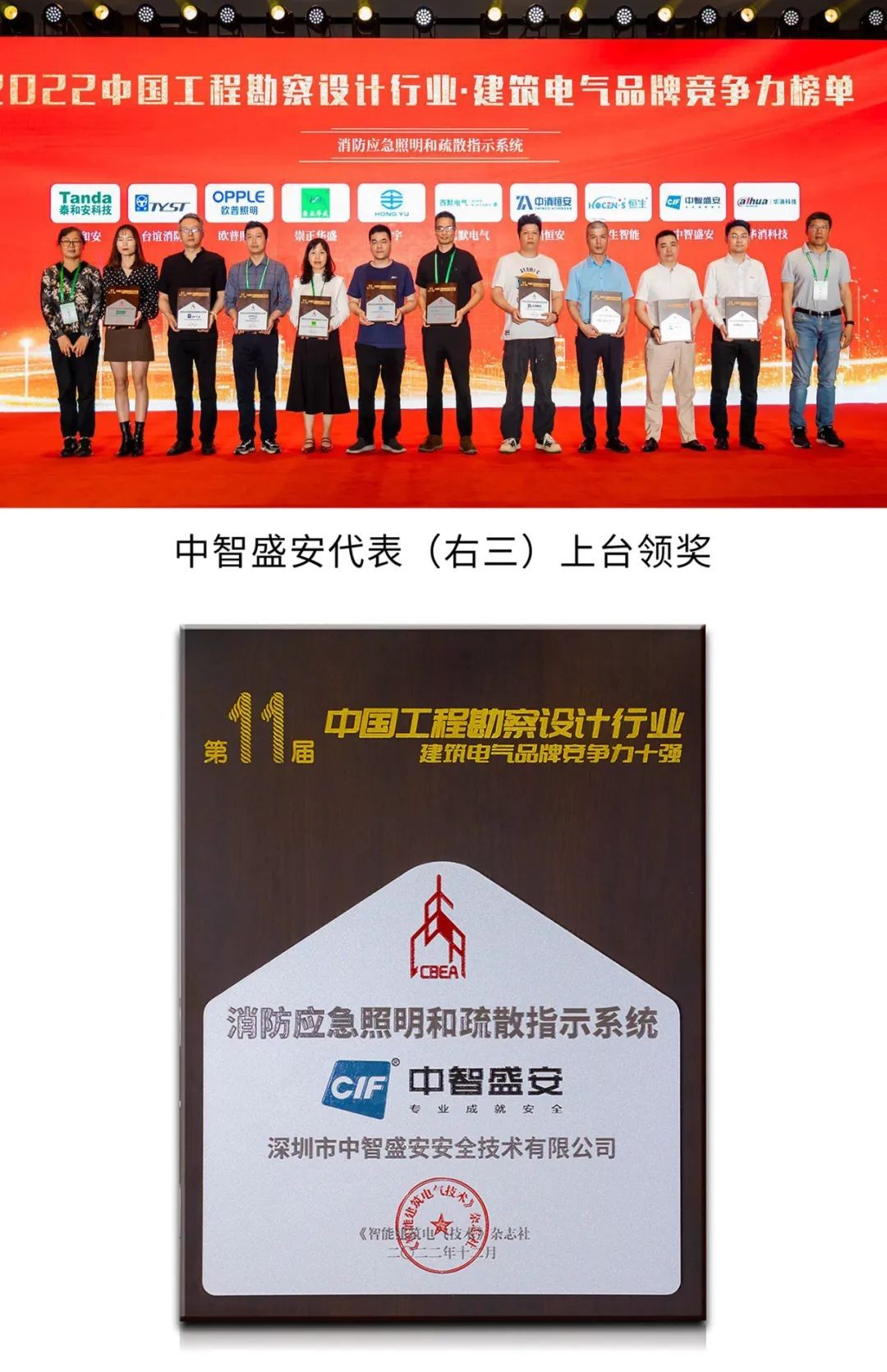 會上同期還舉行《2022中國工程勘察設計行業·建筑電氣品牌競爭力報告》發布儀式暨頒獎典禮。深圳市中智盛安安全技術有限公司(以下簡稱中智盛安)被評為消防應急照明和疏散指示系統競爭力十強企業。