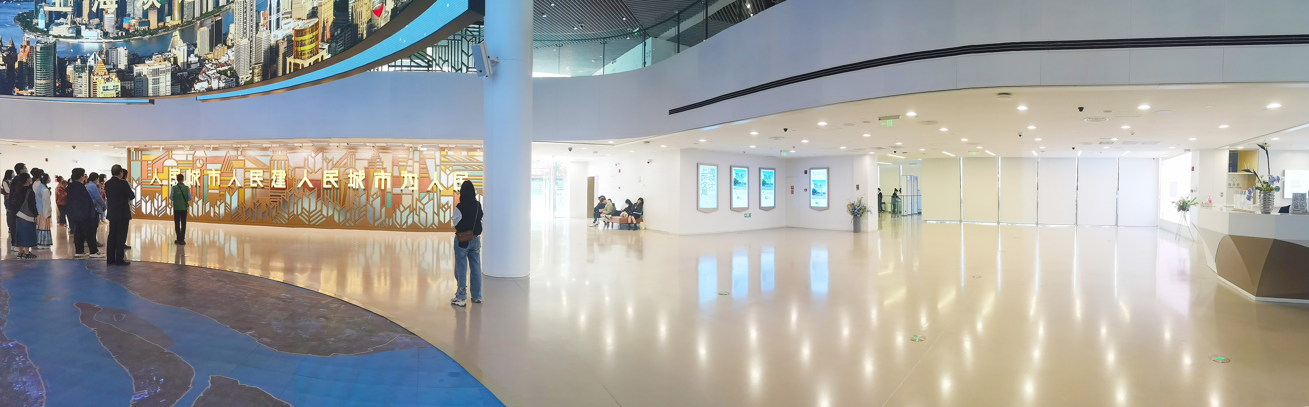 上海城市規劃展示館位于人民廣場東側,占地面積3600平方米,建筑面積18695平方米,其中展示面積13534平方米,建筑高度43.3米。展館區域劃分清晰,主題鮮明。地下一層為臨展廳,一樓是序廳,二、三、四樓分別為 “人文之城”“創新之城”“生態之城”展區,五樓設多媒體展示廳。